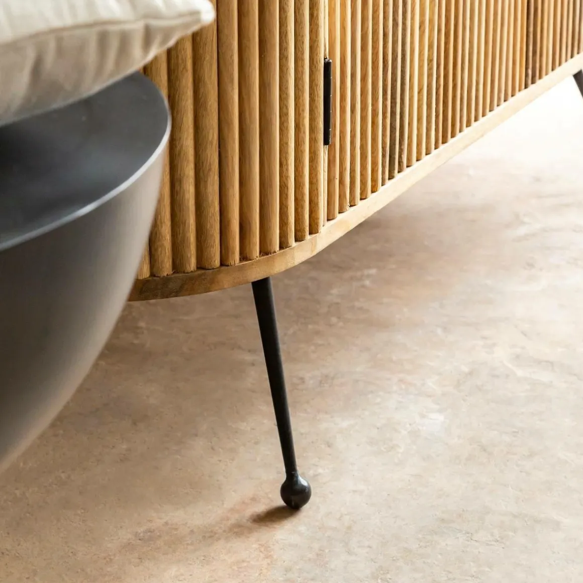 L’armoire Ambrine a tout pour plaire en termes de design, de qualité de fabrication et de style contemporain ! Fabriquée avec une grande attention aux détails en bois de manguier et dotée de pieds et de poignées en métal noir, cette pièce est parfaite pour créer un impact décoratif audacieux.