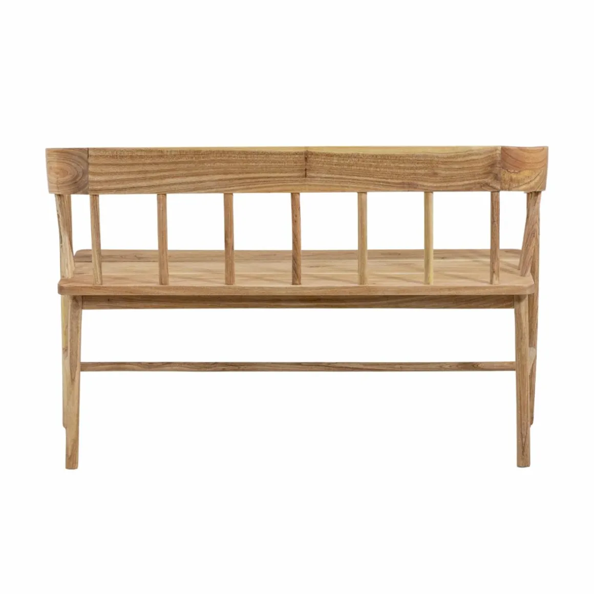 Ce banc en bois de teck brut de la collection June séduit par ses lignes épurées et son esprit scandinave. Sa teinte naturelle et son dossier à barreaux apportent légèreté et authenticité, pour un meuble à la fois chaleureux et intemporel.
