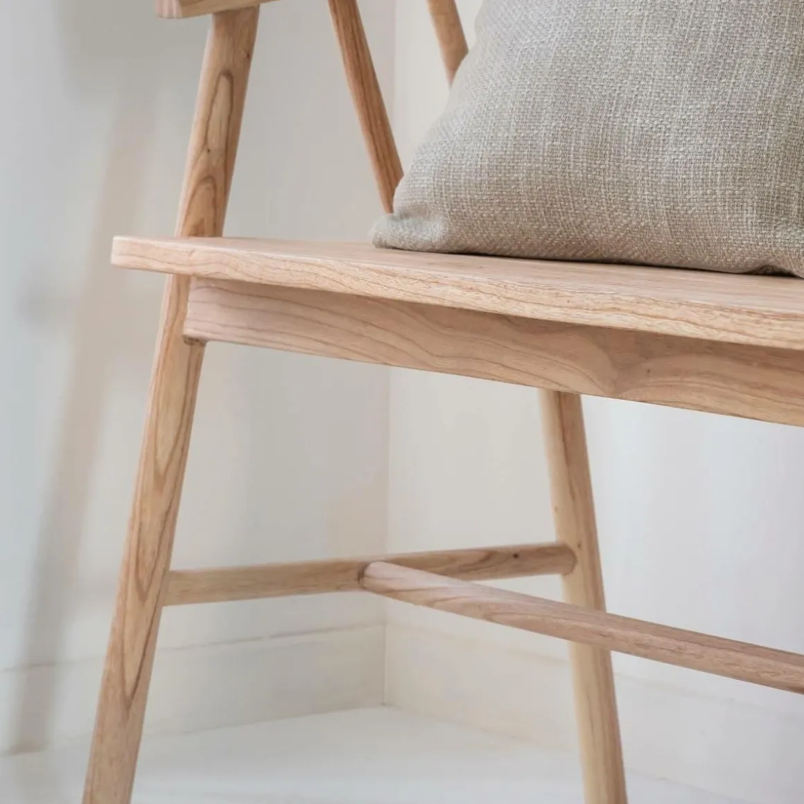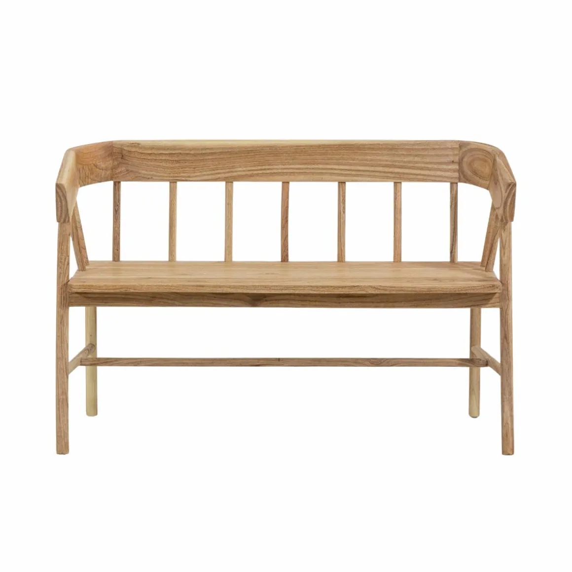 Ses accoudoirs intégrés et son assise spacieuse offrent un confort optimal, que ce soit autour d’une table de repas, dans une entrée ou en bout de lit. Sa finition brute met en valeur le veinage du teck, lui donnant un charme naturel unique.