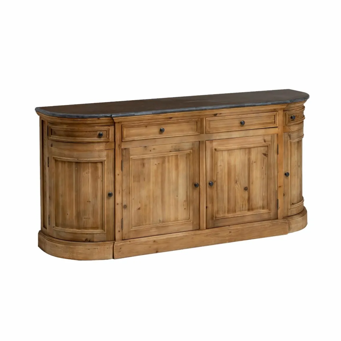 Ajoutez une touche d’authenticité à votre intérieur avec le buffet arrondi en vieux pin et pierre bleue Garance. Ses dimensions parfaites – 48 cm de profondeur, 180 cm de largeur et 85 cm de hauteur – lui permettent de s’intégrer harmonieusement dans vos espaces de vie. Grâce à ses quatre tiroirs et ses quatre portes battantes, ce meuble offre un généreux espace de rangement tout en conservant un design élégant et intemporel.
