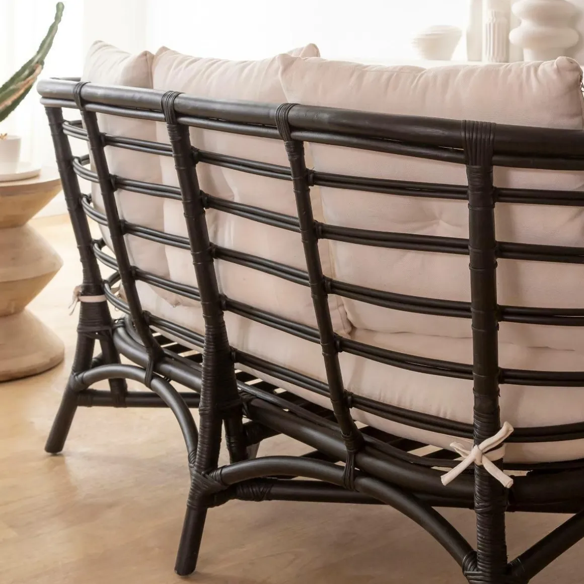 Enchantez vos invités avec le fauteuil Anissa. Avec sa structure en rotin et son style bohème, ce canapé 2 places fera sensation dans n’importe quel espace de vie.