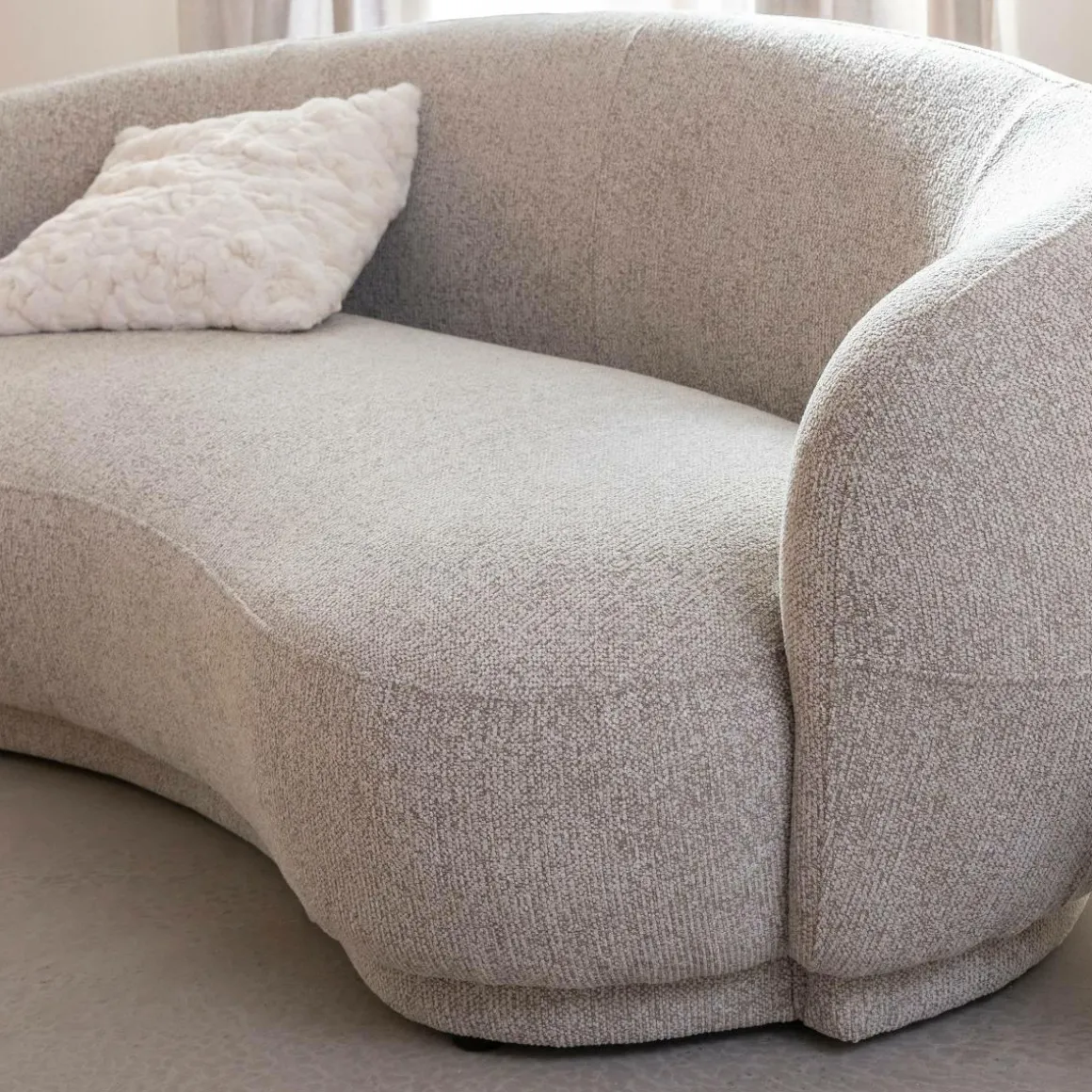 Adoptez une ambiance douce et enveloppante avec le canapé Maddy en tissu bouclette gris. Véritable coup de cœur design, ce canapé 3 places se distingue par ses courbes harmonieuses et son revêtement texturé ultra cosy, parfait pour sublimer un intérieur contemporain.