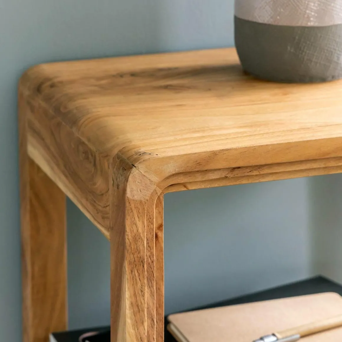 Cette colonne en bois d’acacia de la collection Emyr allie lignes douces et fonctionnalité, parfaite pour meubler un petit espace avec style. Son design aux angles arrondis adoucit la silhouette verticale du meuble, tout en mettant en valeur les nuances chaleureuses et le grain vivant du bois d’acacia massif. Un format compact qui maximise la capacité de rangement sans encombrer visuellement.