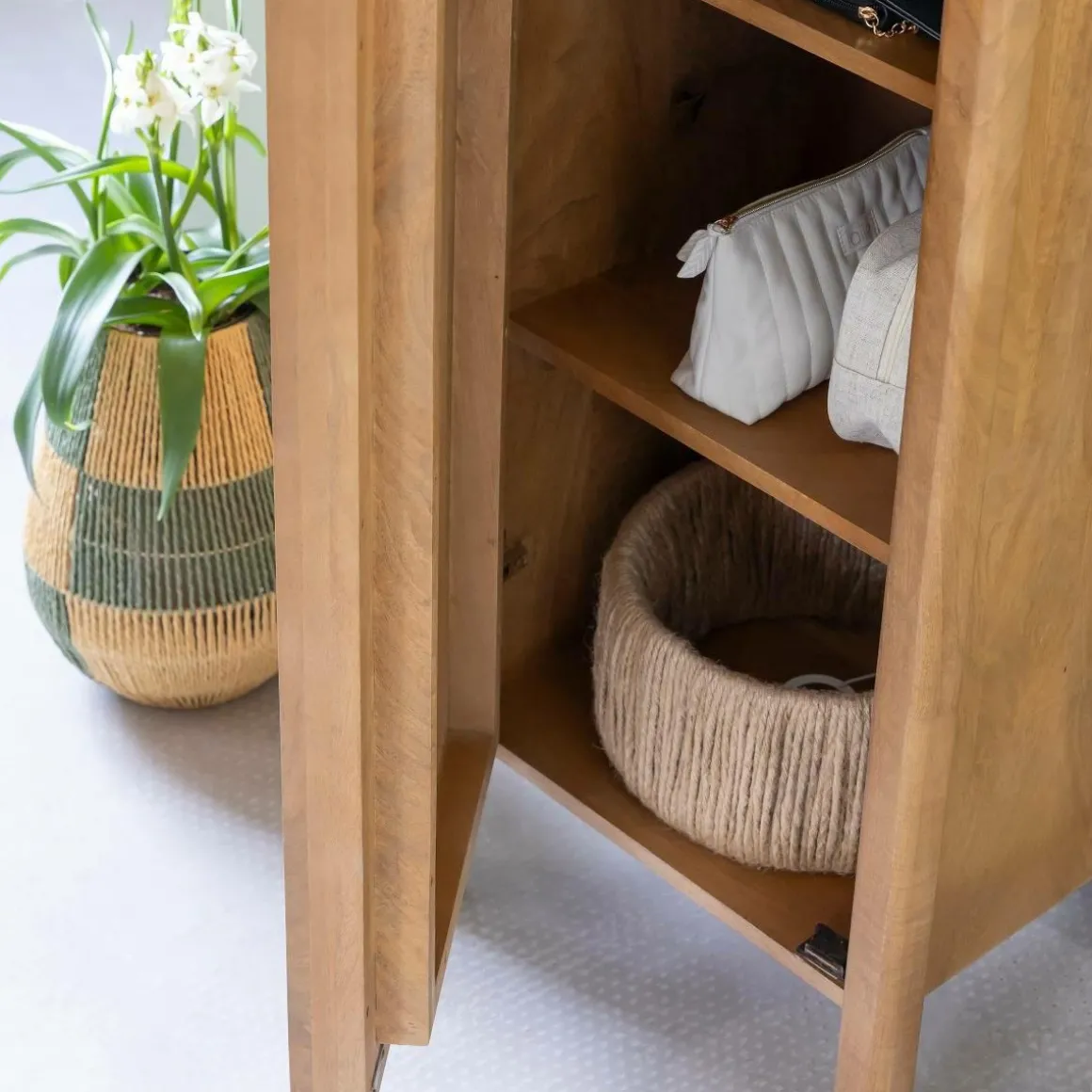 Avec sa silhouette élancée et sa forme toute en courbes, cette colonne en bois de manguier de la collection Féodor est la parfaite alliance entre design et praticité. Ses lignes douces, ses bords arrondis et sa poignée sculptée dans la façade offrent un style organique, chaleureux et résolument contemporain. Le bois de manguier, noble et lumineux, apporte un charme naturel à cette pièce singulière.