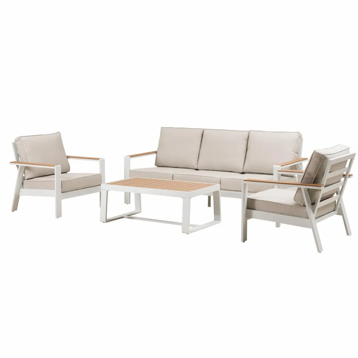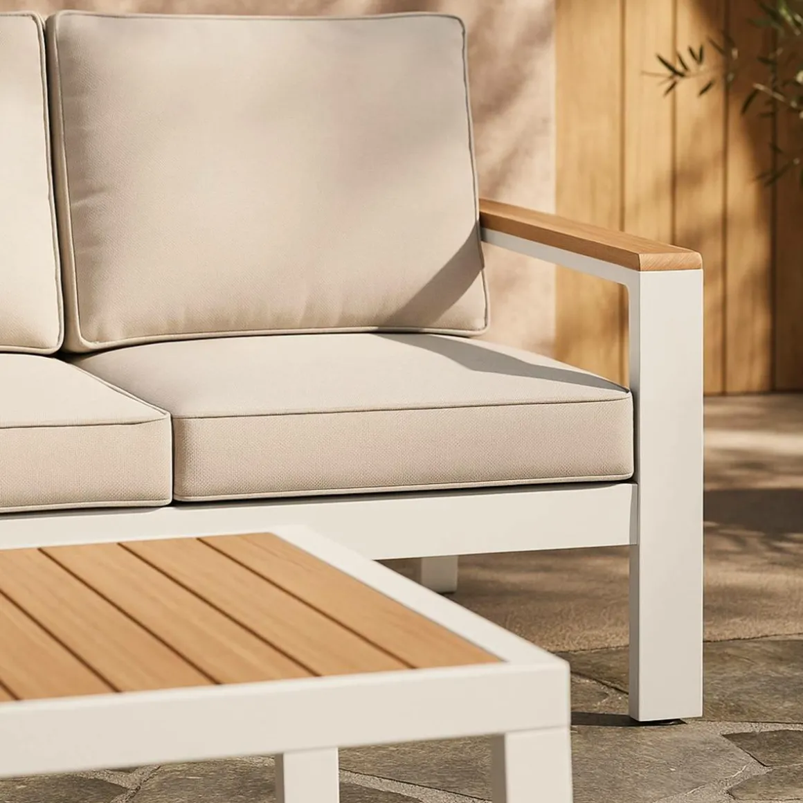 Le salon de jardin Orion combine élégance et confort avec sa structure en aluminium de couleur crème.