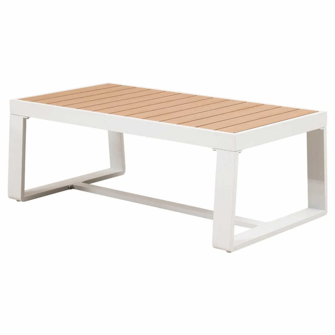Composé d’un canapé trois places et de deux fauteuils une place, cet ensemble est complété par des coussins confortables, parfaits pour créer un espace extérieur à la fois chic et agréable. Les accoudoirs et le plateau de la table basse au style bois apportent une touche naturelle et chaleureuse.