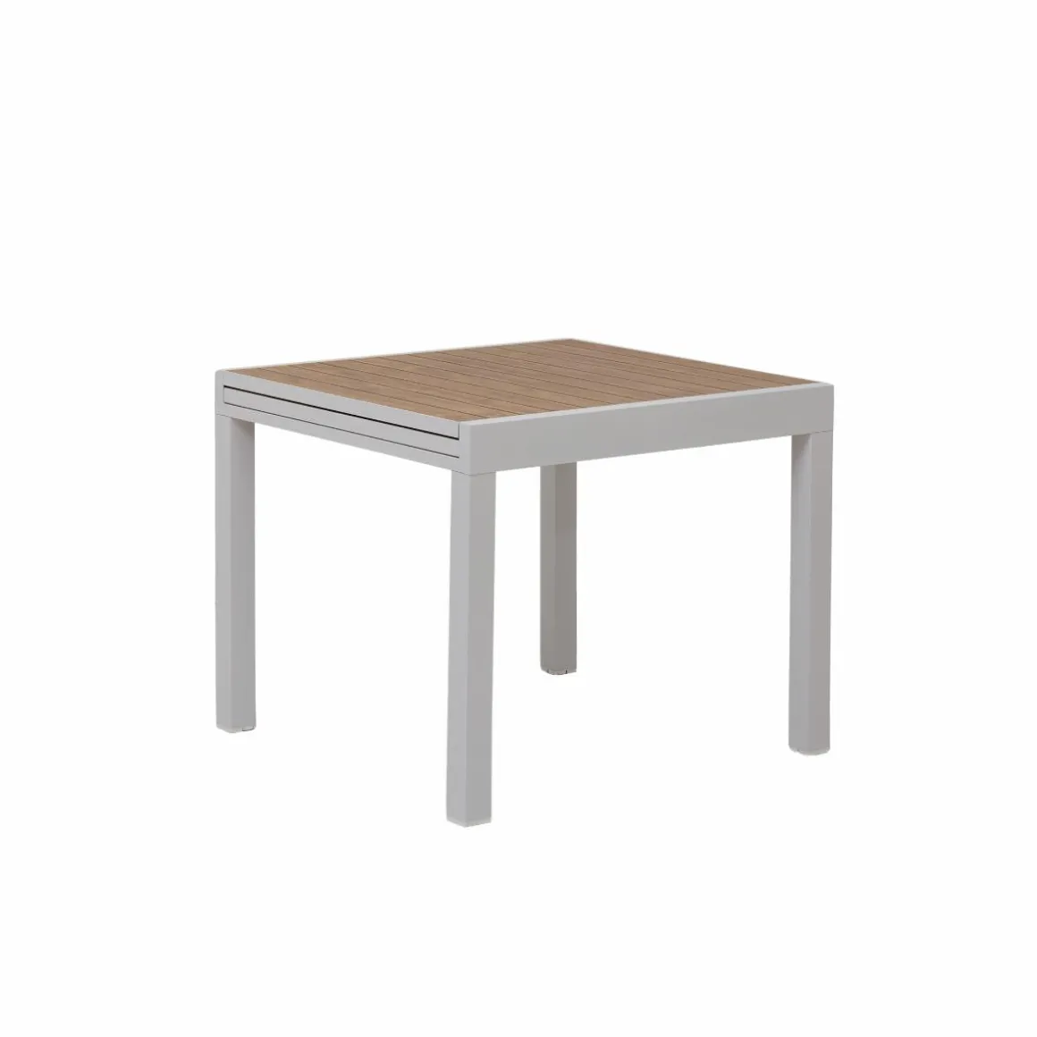 Apportez une touche d’élégance à votre intérieur avec cette table à manger extensible en aluminium et effet bois. Compacte en format carré (90 x 90 cm), elle s’adapte facilement au quotidien. Son ingénieux système d’extension lui permet d’atteindre 180 cm pour accueillir jusqu’à 8 personnes.