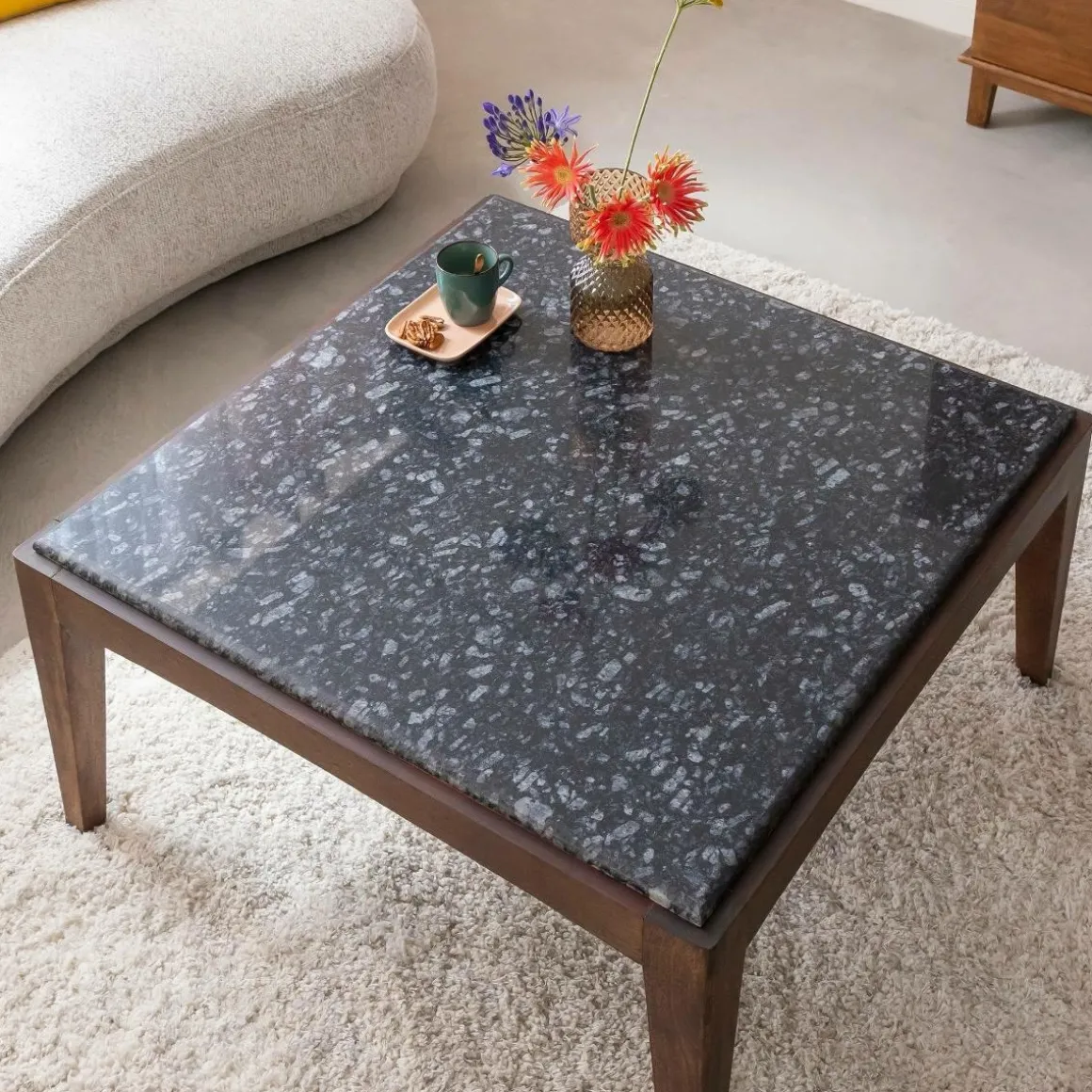 Raffinée et audacieuse, cette table basse carrée Ilithe en bois de manguier et marbre noir veiné se distingue par son élégance affirmée. Elle combine matériaux nobles et design sobre pour créer une pièce maîtresse dans tout salon contemporain.