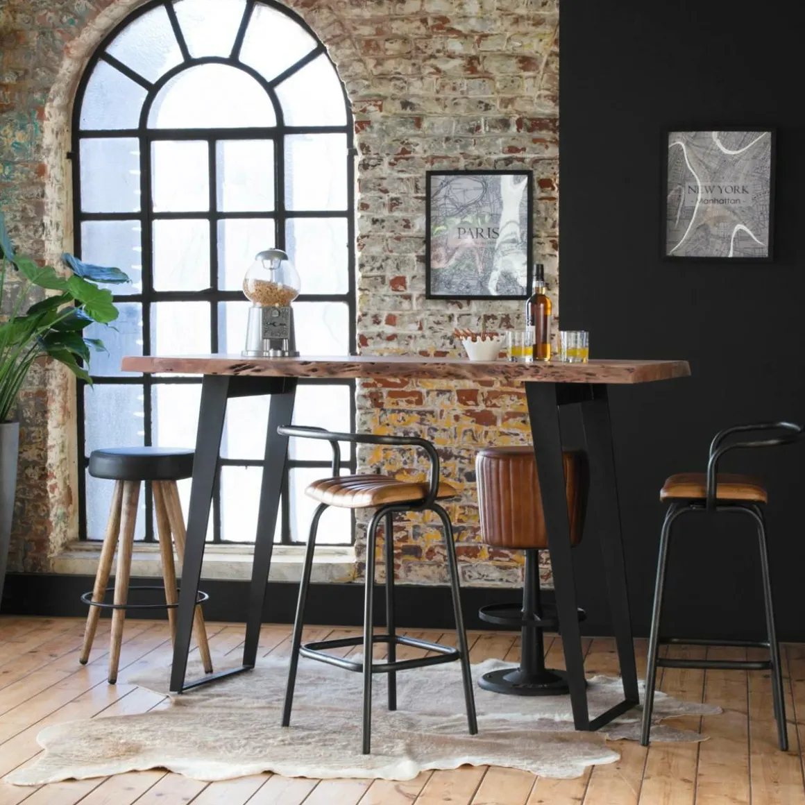 Cette table mange debout bois aux dimensions généreuses vous permettra d’accueillir aisément 6 tabourets de bar. Idéale pour aménager un coin repas dans une cuisine, elle convient également pour rendre plus agréable un coin bibliothèque ou bar dans une maison familiale. Ses pieds métalliques asymétriques, qui donnent à la table un style très design, laissent une place optimale pour les grandes jambes. Son magnifique plateau en acacia aux contours irréguliers lui donne un aspect naturel vraiment unique ; chaque plateau étant fait à la main. La couleur oranger du bois d’acacia apportera une touche de chaleur à votre intérieur.