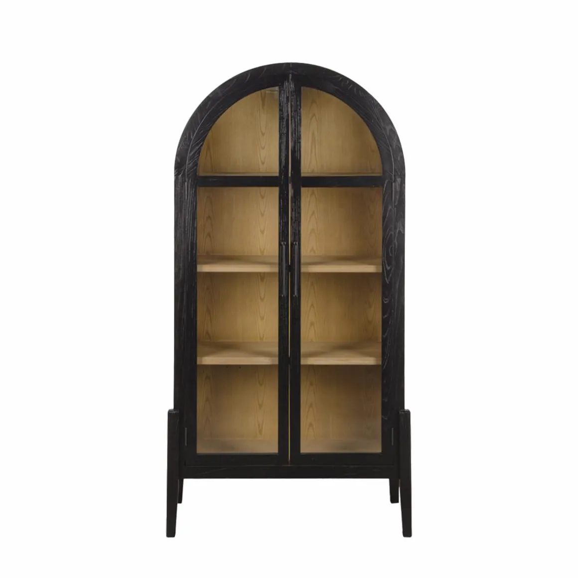 La forme cintrée sur le haut lui confère une allure originale et sophistiquée, rappelant les arches des anciennes verrières. Derrière ses portes vitrées, quatre étagères offrent un bel espace de rangement pour exposer votre vaisselle, vos livres ou vos objets décoratifs tout en les protégeant de la poussière.